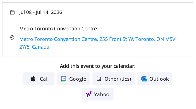 Registration confirmation emails can also include the Add to Calendar button, allowing attendees to save the event immediately after registering.