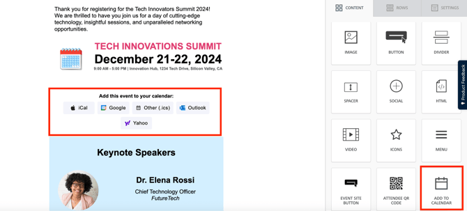 After saving, the Add to Calendar button will appear directly in your email preview.