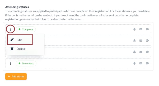 - Create New Status: In addition to the default attending and not attending statuses, you can create new statuses that align with your event's unique requirements. For example, you could establish a Pending Approval status for attendees awaiting confirmation, or designate a VIP status to distinguish special attendees.