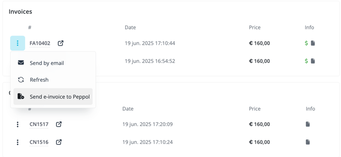 - Whether an e-invoice was successfully sent via Peppol