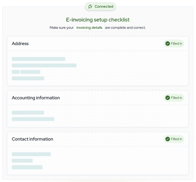 If everything is configured correctly, a green “Connected” icon will confirm that your organization is now Peppol-ready and able to send e-invoices.