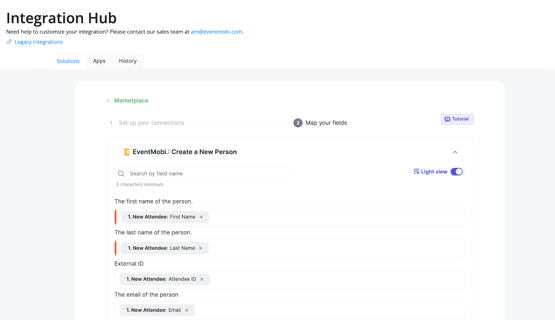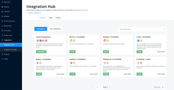 A Solution is a ready-made setup that lets you link EventMobi with another platform in just a few clicks.