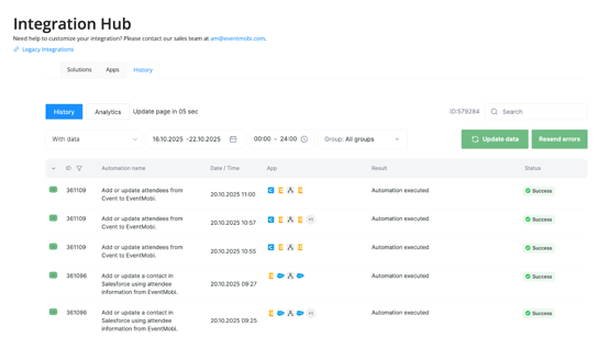 Once your earlier data has been synced, don’t forget to switch the automation timing back to Real-time. This will ensure any new data, such as attendee signups, continues to flow into EventMobi automatically.