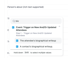 To sync that information correctly, you would map Cvent’s Bio field to EventMobi’s About field.