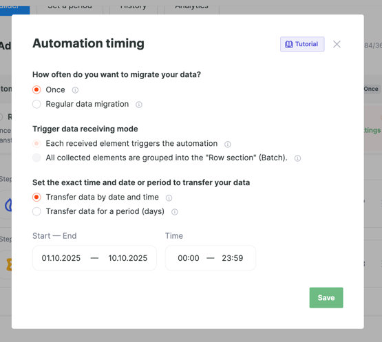 Once you’re in Data migration mode, you’ll be asked a few things:
