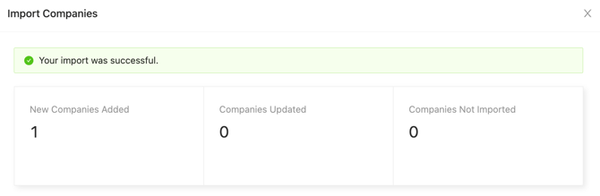 To save your changes to the Companies library, select the Import option to upload the template. Once your file has imported, an email invitation will be sent to any new email addresses that you have entered into the Company Admin(s) column.