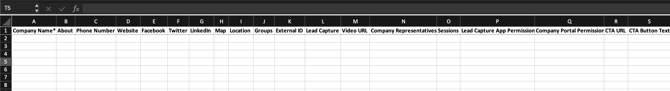 Following columns are available:- Company Name (required): Input the name of the company as you want it to appear in your Event App.