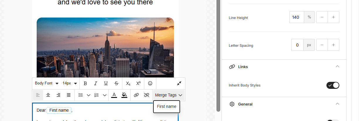 - Using Merge Tags, you can also include other personalized details such as first and last name