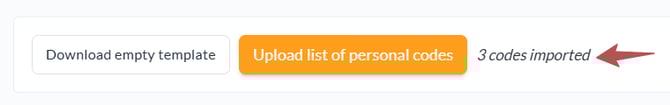 Next to the Upload button, you'll notice a count of imported codes. This count corresponds to individuals who have pre-registered for the event but haven't completed their registration yet, aligning with the number of attendees in your Excel file.