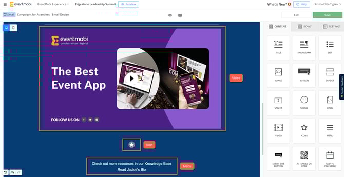 Email Campaigns help you to communicate with attendees through every stage of the event lifecycle. These communications can be a great way to launch the Event App, to give teasers on upcoming content and to remind attendees about important timelines and requirements related to the event.